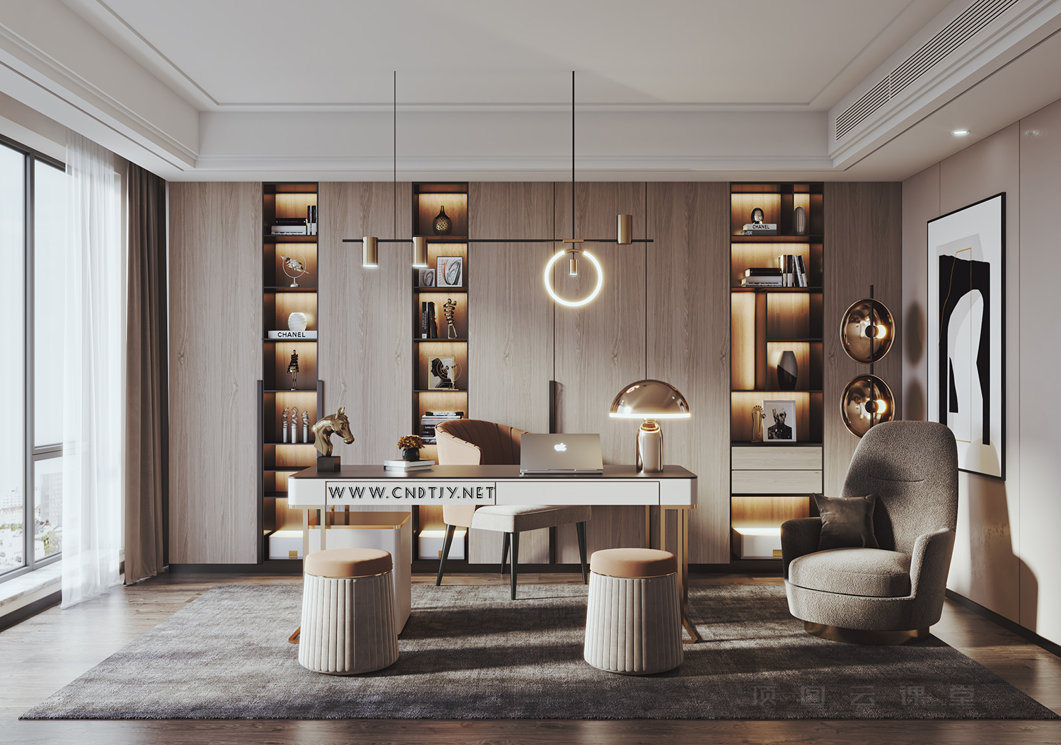 VRay5.1系列案例二现代书房写实表现